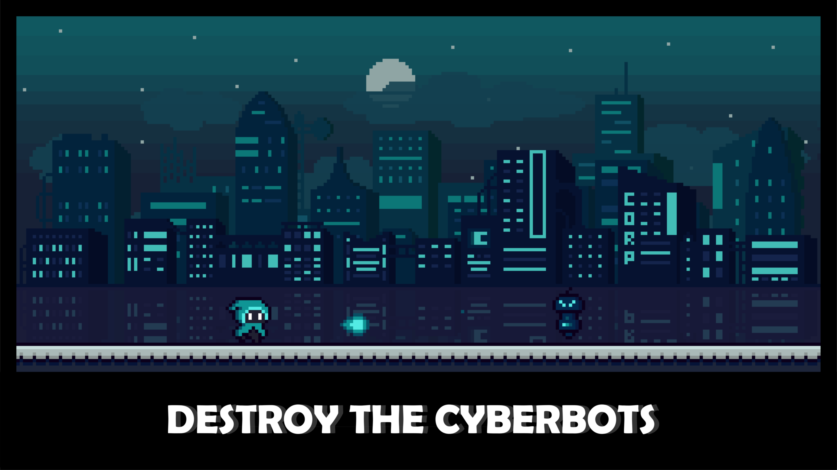 You’re a cybermage sprinting through a neon-soaked cybercity, shooting corrupted bots and jumping over laser traps.